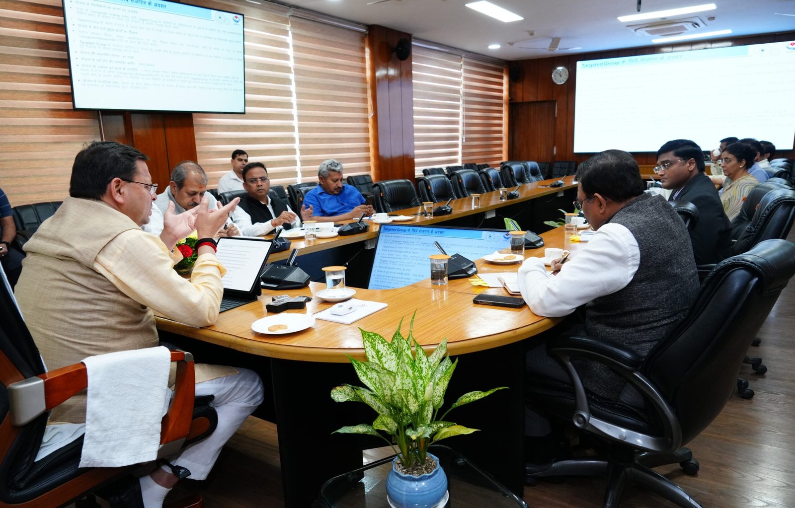 जनपदों में कई बार जिला योजना समिति की बैठकों में निर्धारित गणपूर्ति (1/2 सदस्य उपस्थित) न होने के कारण जिला योजना समिति की बैठकें बार बार स्थगित होने के फलस्वरूप विकास सम्बन्धी कार्यों में उत्पन्न होने वाली कठिनाईयों को दूर करने के उद्देश्य से राज्य में लागू उत्तराखण्ड जिला योजना समिति नियमावली, 2010 के नियम 29 (गणपूर्ति) को निम्नानुसार प्रतिस्थापित कर गणपूर्ति हेतु कुल सदस्यों की संख्या 1/2 के स्थान पर 1/3 सदस्यों तथा प्रथम बार गणपूर्ति न होने की दशा में स्थगित बैठक के लिए कम से कम 1/4 सदस्यों की उपस्थिति अनिवार्य किये जाने हेतु उत्तराखण्ड जिला योजना समिति (संशोधन) नियमावली 2023 प्रख्यापित किये जाने के प्रस्ताव को दी गई मंजूरी।